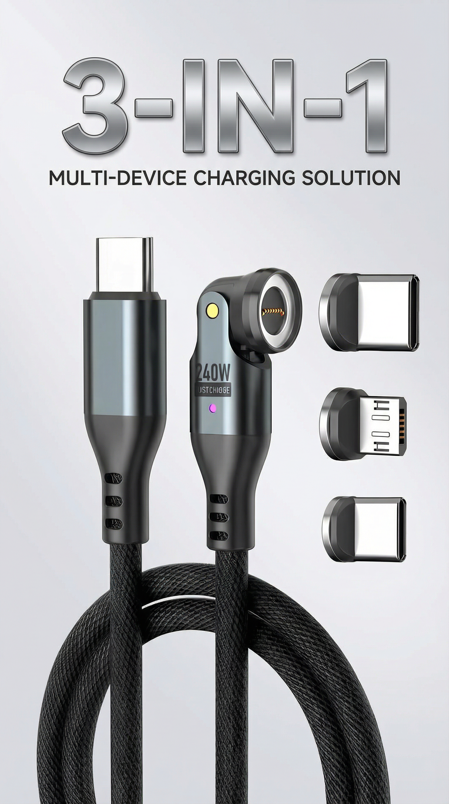 The versatility is incredible - one cable for all my devices! The magnetic snap is so satisfying, and the sleek look fits perfectly with my setup. Charging has never been this effortless.